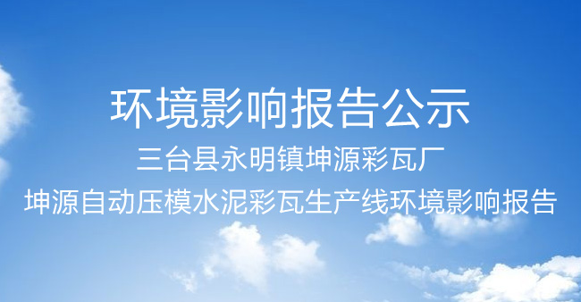 三臺縣永明鎮(zhèn)坤源彩瓦廠坤源自動壓模水泥彩瓦生產(chǎn)線環(huán)境影響報告表全文信息公示