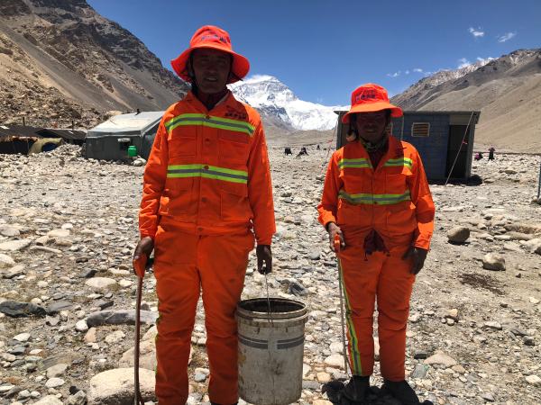 珠峰環(huán)衛(wèi)工。澎湃新聞記者 張成杰 圖