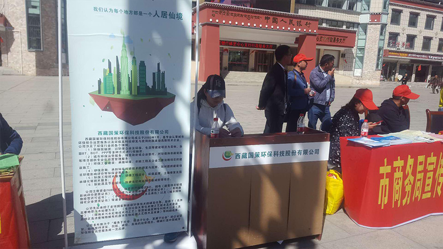 2018年6月5日西藏國策環(huán)??萍脊煞萦邢薰玖种シ止緟⒓恿种ナ协h(huán)保局組織的“美麗中國,我是行動(dòng)者”世界環(huán)境日宣傳活動(dòng),我林芝分公司以環(huán)保宣傳資料,環(huán)保知識(shí)展示牌,向社會(huì)公眾宣傳環(huán)保知識(shí)和互動(dòng),活動(dòng)中林芝市政府領(lǐng)導(dǎo),對(duì)我分公司的環(huán)境衛(wèi)生宣傳工作表示肯定和贊賞,國策環(huán)保呼吁:環(huán)保從點(diǎn)滴做起,共享美麗林芝 !