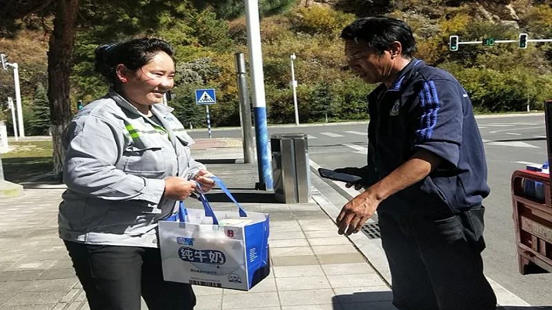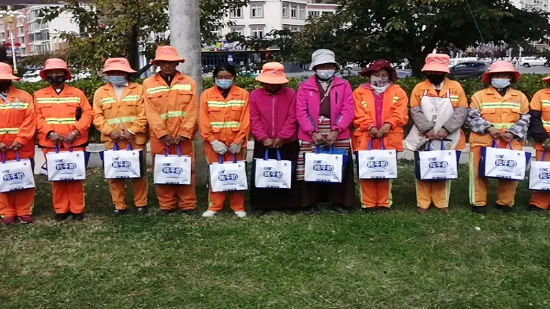 為感謝他們多年來的辛勤付出,國策環(huán)保林芝分公司相關(guān)人員向作業(yè)在一線的環(huán)衛(wèi)工人以每人80元的標準,發(fā)放了當(dāng)?shù)靥禺a(chǎn)雪頓純牛奶、嘎瑪雞蛋、鹽等慰問品,共計274份。