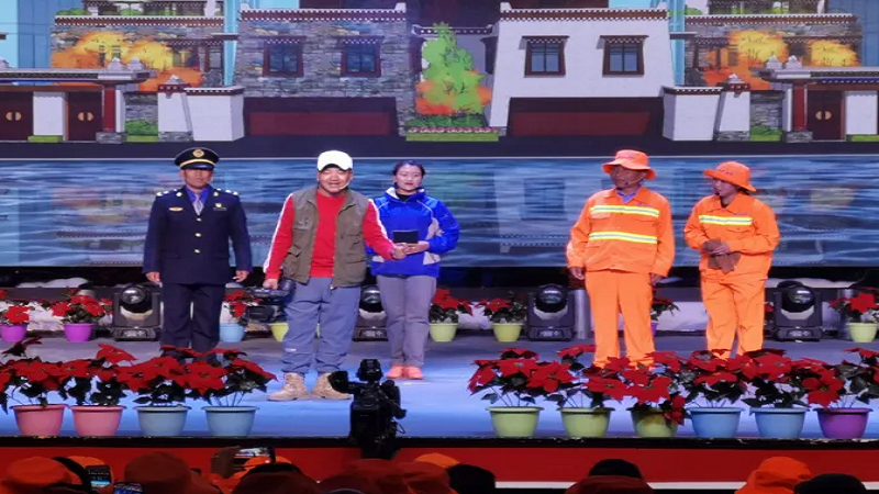 為慶?!碍h(huán)衛(wèi)工人節(jié)”這一個平凡而偉大的節(jié)日,鼓舞全體環(huán)衛(wèi)工人的士氣,10月26日晚,由日喀則市委、市政府主辦,市城市管理和綜合執(zhí)法局、市文化局承辦的主題為“頌現(xiàn)代化新西藏 展環(huán)衛(wèi)工新風(fēng)采”第五屆環(huán)衛(wèi)工人節(jié)表彰大會暨文藝匯演在日喀則市職業(yè)技術(shù)學(xué)院舉行,國策環(huán)保日喀則分公司作為參與方積極參與了此次活動。