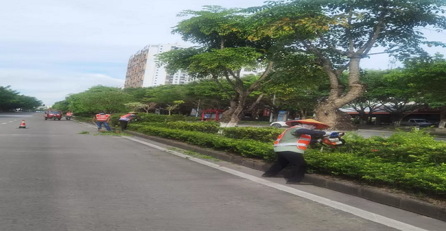 2、安排修剪人員對興東路、民族路、新華路、長湖路、東盟大道、友好大道、北侖大道、高興大道、濱海大道、竹山進港大道等綠化面積進行修剪,統(tǒng)一修枝整形,出動650人次、修剪綠化帶25條,清運78車次,共修剪約14萬平方米。