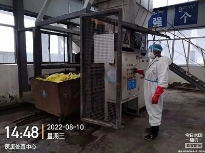(國策環(huán)保林芝分公司工作人員對醫(yī)療廢物進行安全處置)